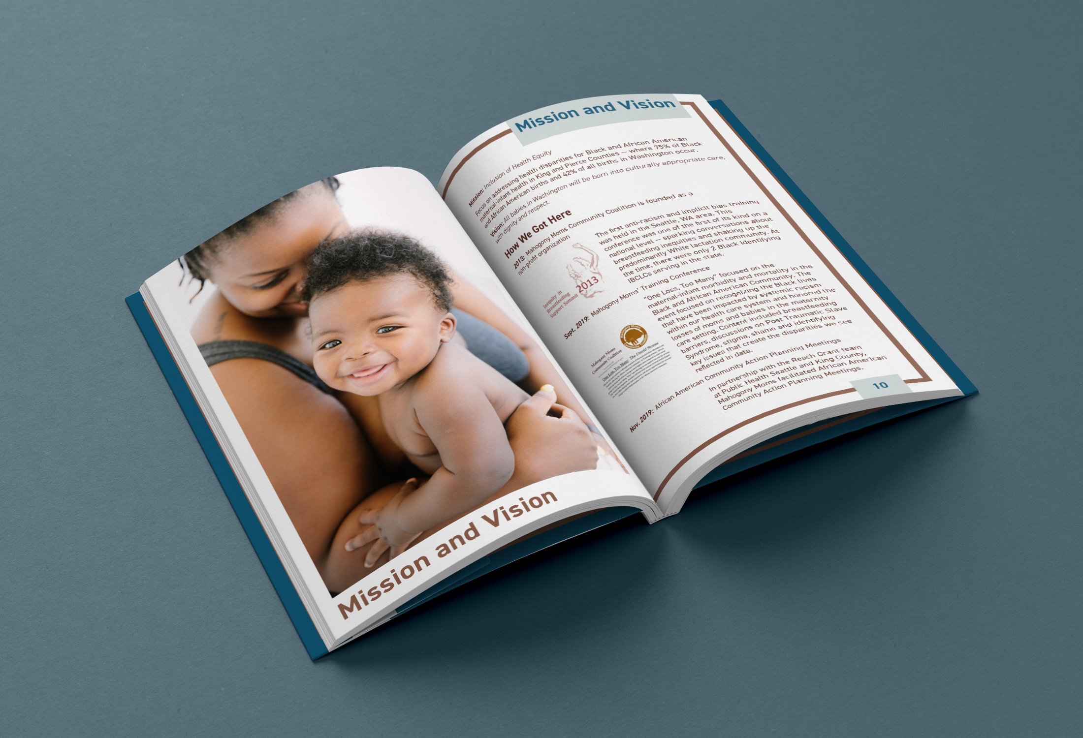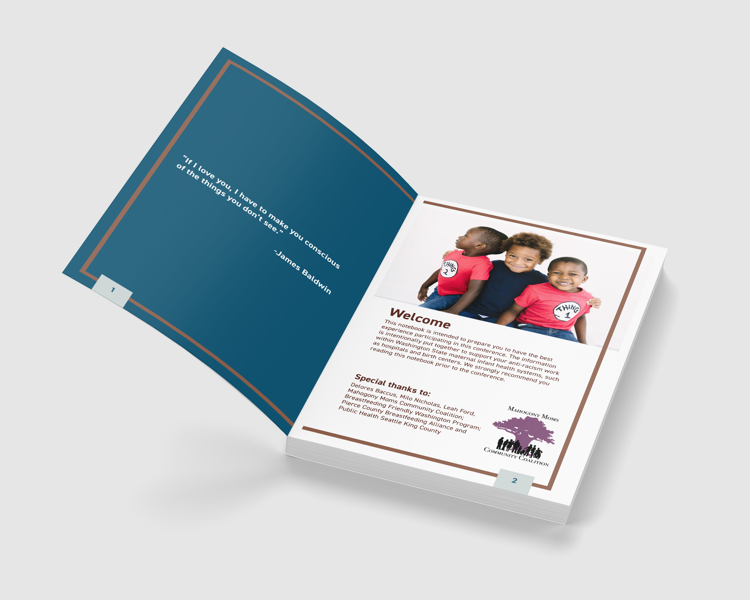 The Mahogony Moms Community Coalition’s mission focuses on addressing health disparities for Black and African-American maternal-infant health in Washington state’s King and Pierce Counties. It was an honor to design these notebooks for their 2020 and 2021 conferences.