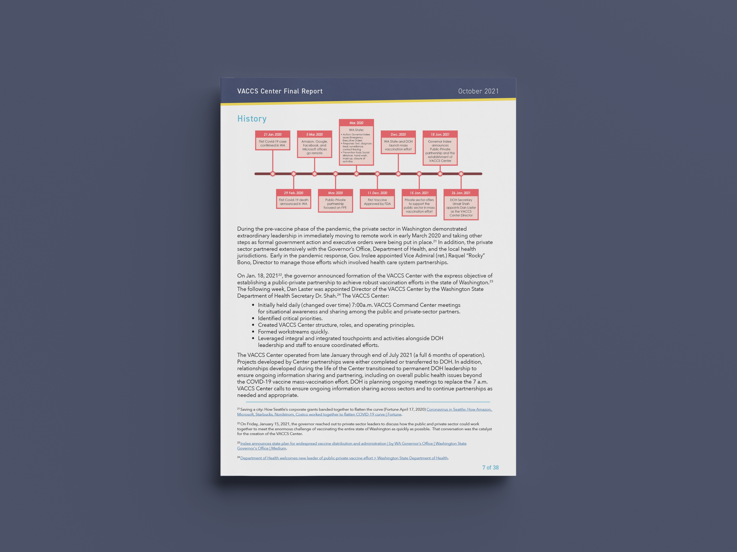 The COVID-19 Vaccine Action Command and Coordination System (VACCS) Center was a major undertaking by the Department of Health and their private-sector partners, leveraging those partners’ talent and resources in support of the state achieving the initial goal of administering 45,000 COVID-19 vaccine doses per day in the safest, fastest, most equitable and efficient manner in the early days of vaccinations when supply was limited.